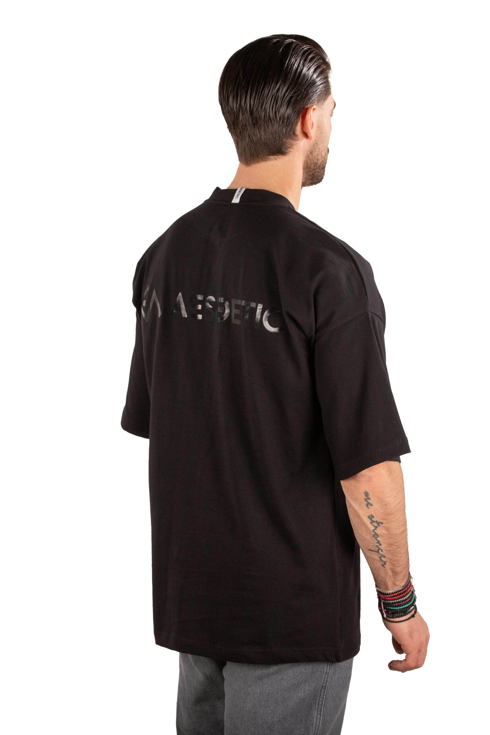Μαύρο T-shirt Βαμβακερό με Λογότυπο Πίσω