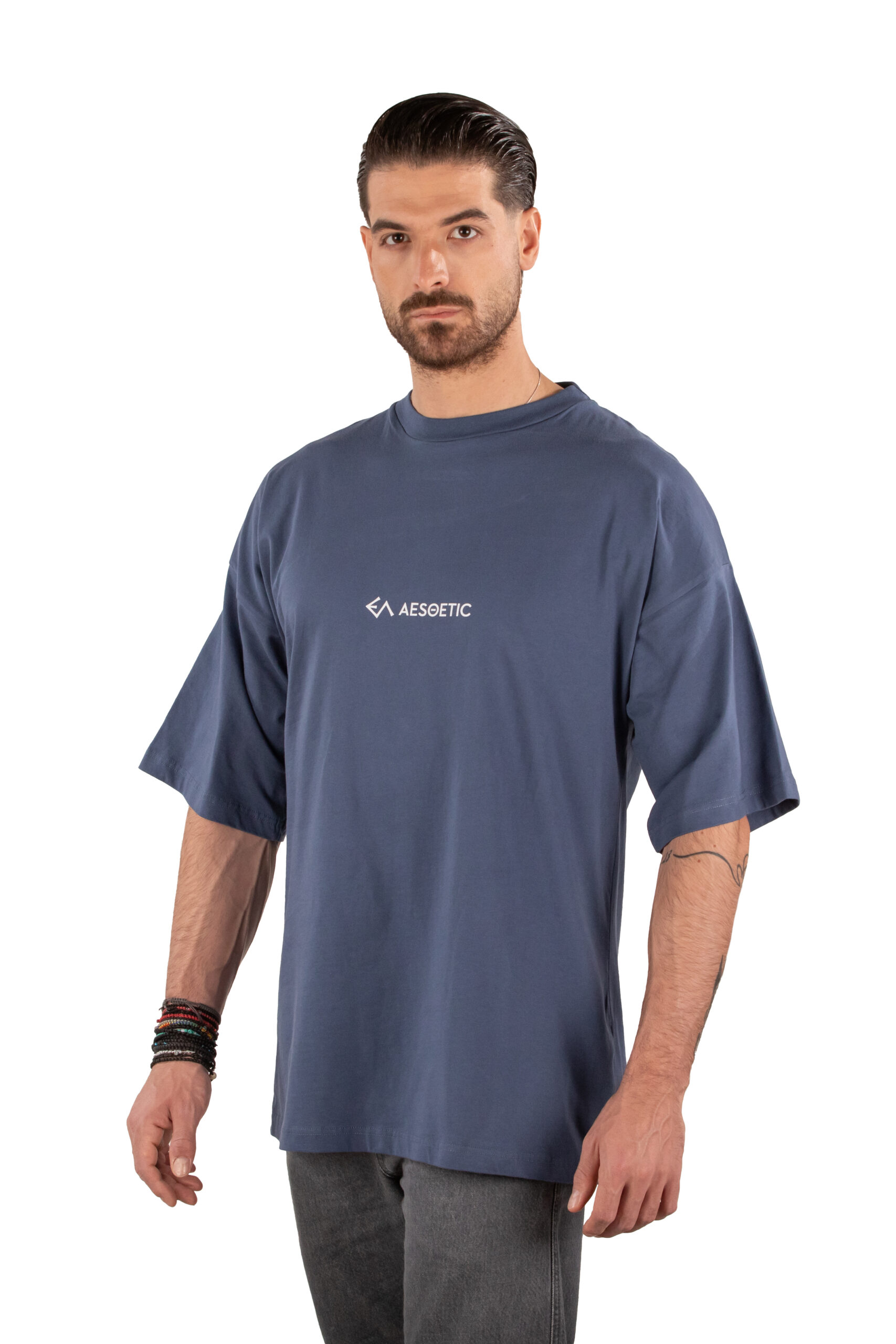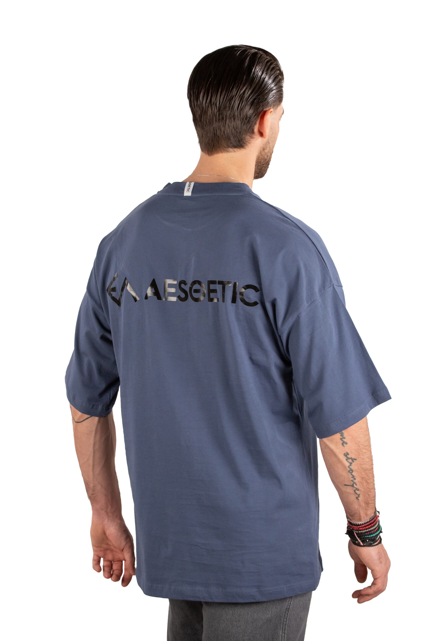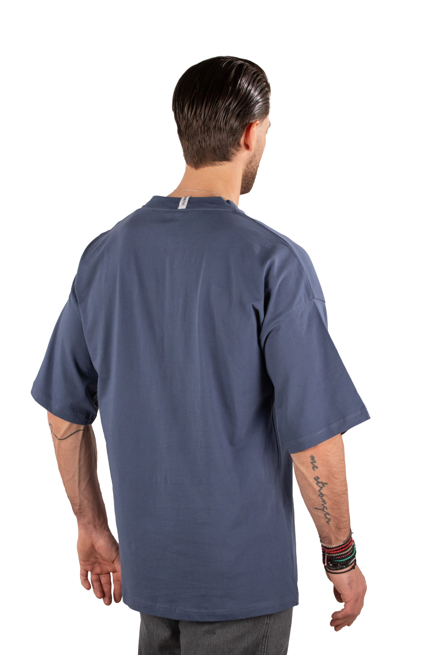 Μπλε T-shirt Βαμβακερό με Λογότυπο Πίσω